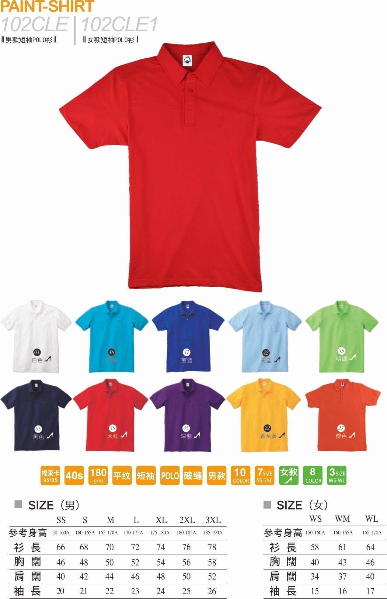 #(訂造班衫,團體)優惠1 : 訂造 102 CLE 180克平紋反領Polo-shirt + A4 size 單色絲印Logo = $65 55 (40 件以上)