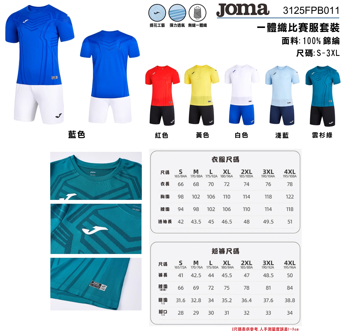 JOMA 3125FPB011成人組隊球衣 + 後號碼 = $ 169( 以上價錢需訂做15 套以上 )
