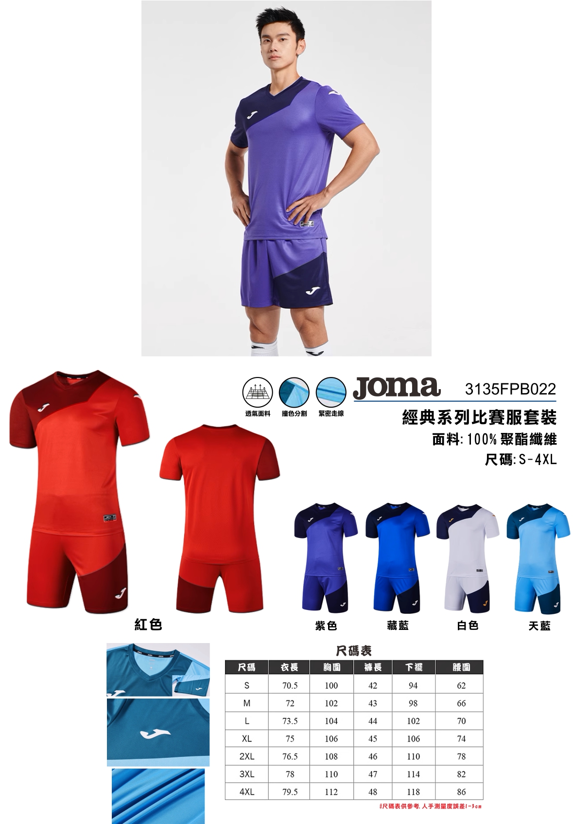 JOMA 3135FPB022成人組隊球衣 + 後號碼 = $ 139( 以上價錢需訂做15 套以上 )