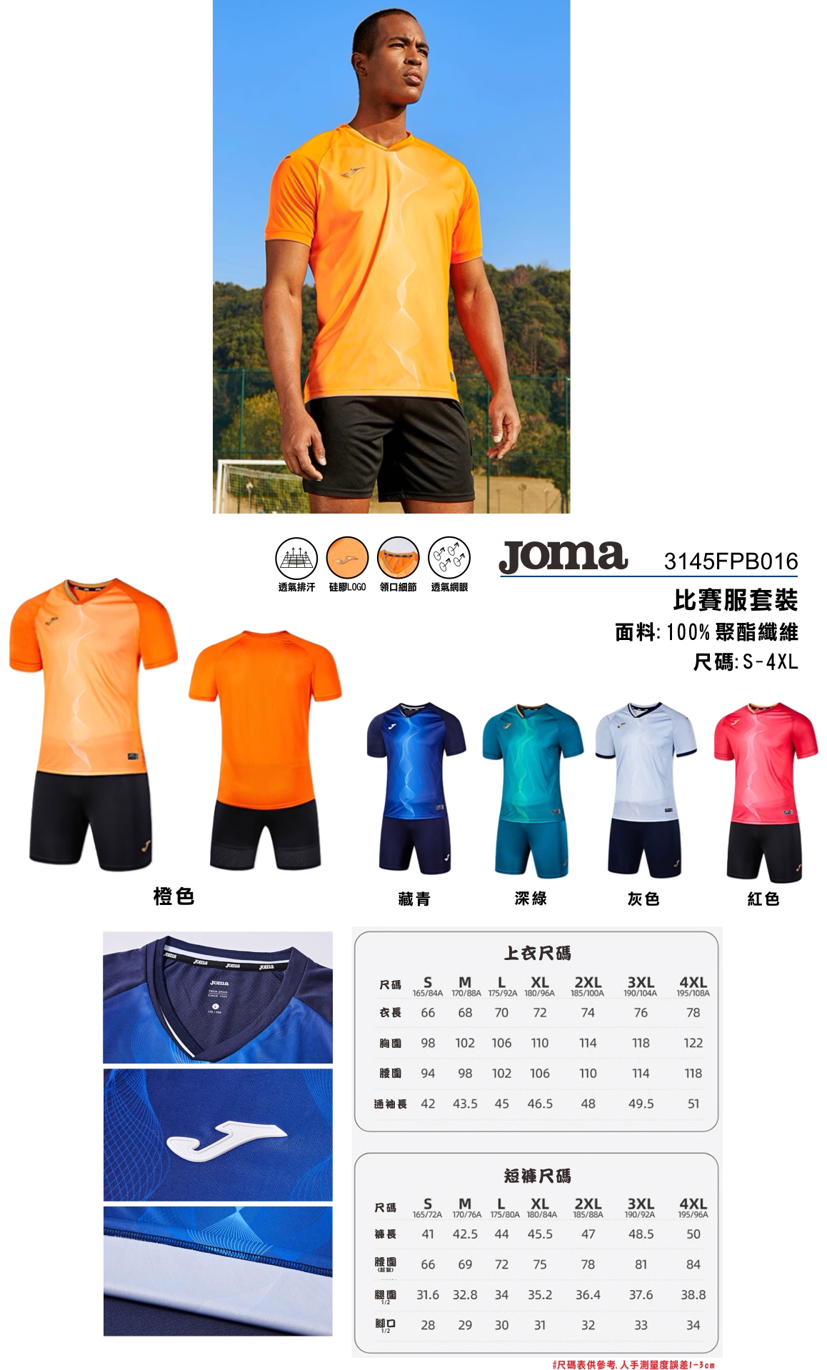 JOMA 3145FPB016成人組隊球衣 + 後號碼 = $ 149( 以上價錢需訂做15 套以上 )