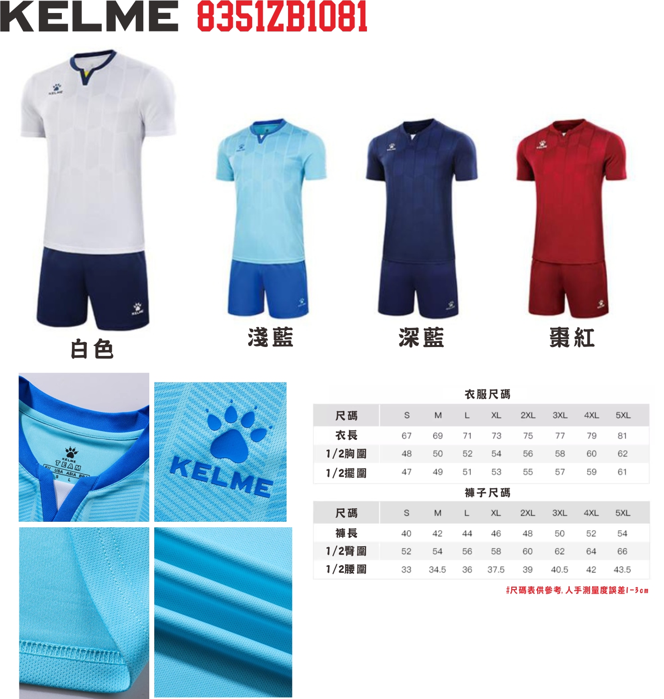 KELME 8351ZB1081成人組隊球衣 + 後號碼 = $ 159( 以上價錢需訂做15 套以上 )