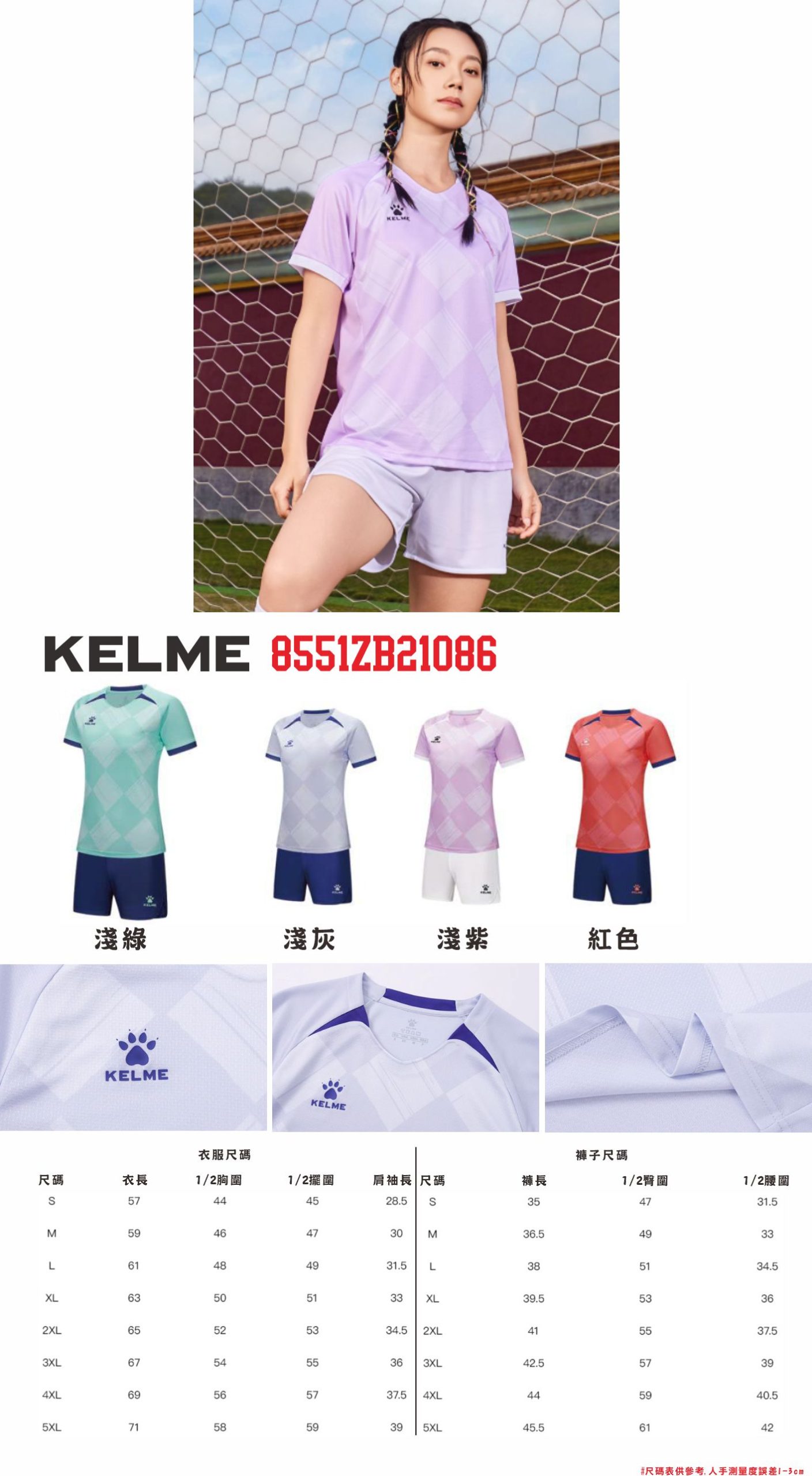 KELME 8551ZB21086女子成人組隊球衣 設有多款色. 設有成人尺碼. 西班牙品牌,高質量的選擇.