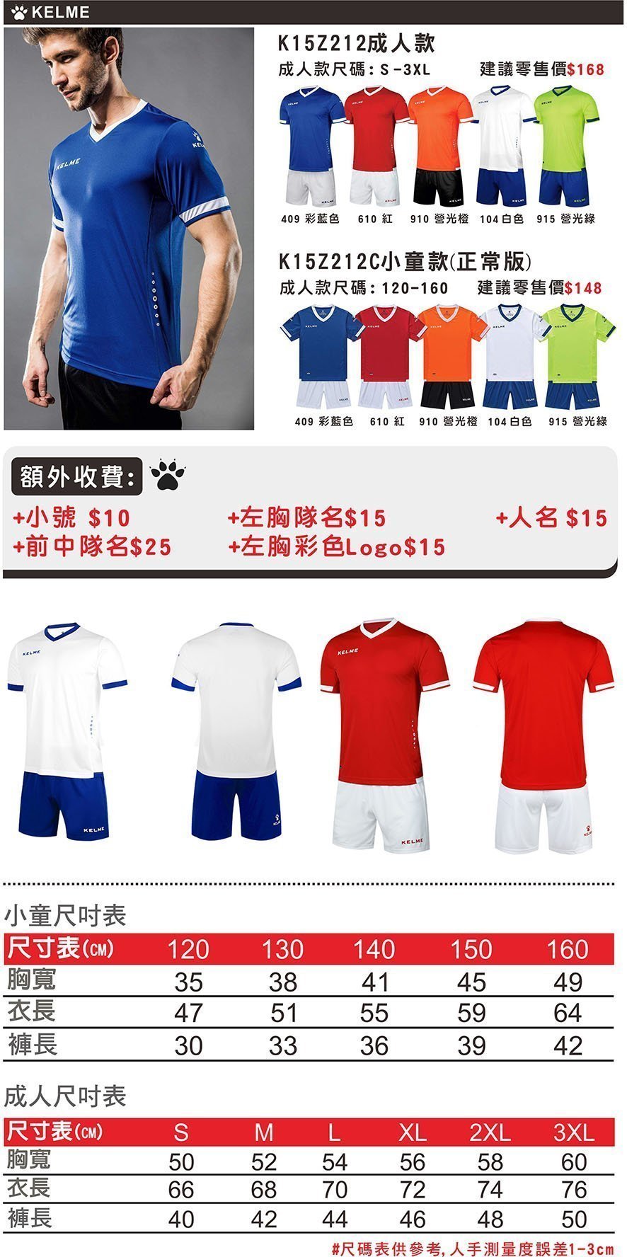 KELME K15Z212 /K15Z212C 組隊球衣 設有多款色. 設有小童,成人尺碼. 西班牙品牌,高質量的選擇.