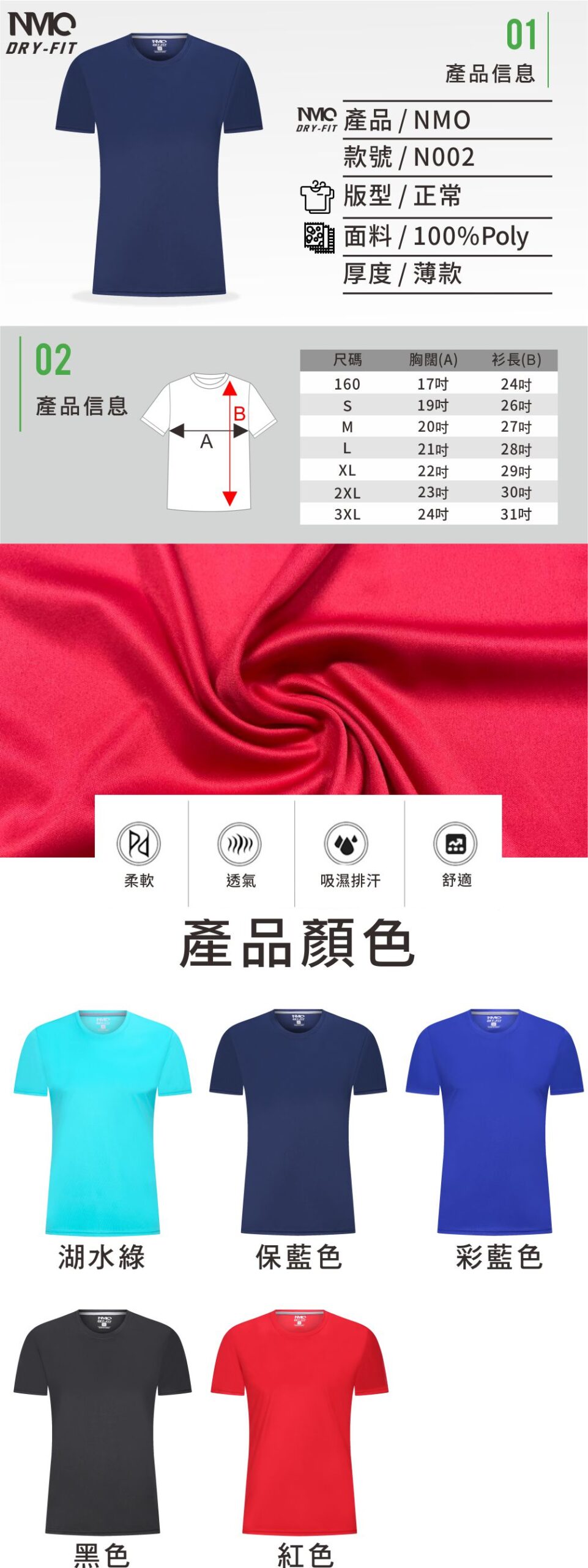 NMO透氣快乾T-shirt (N002 款)