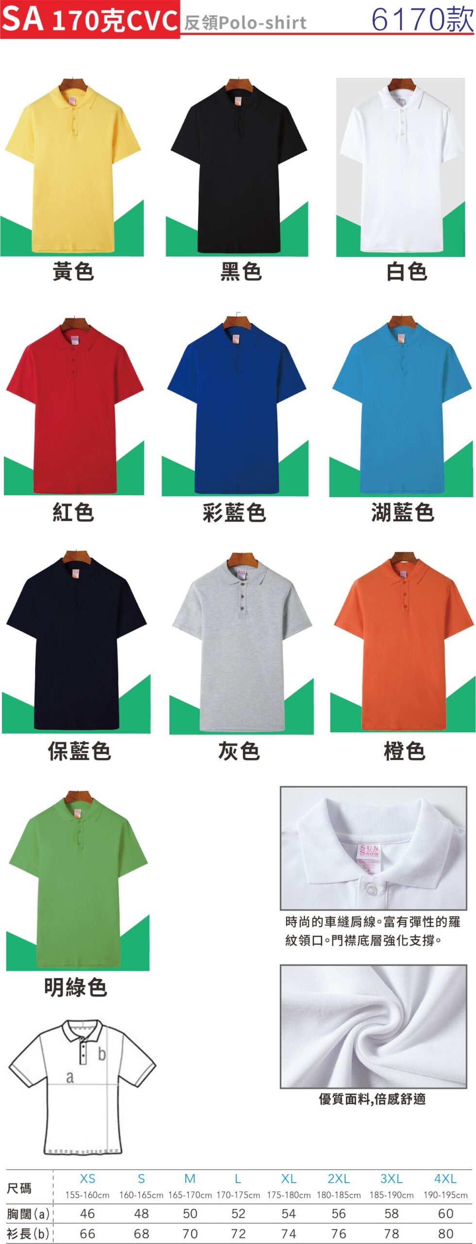 #(訂造班衫,團體)優惠2 : 訂做SA 170克 CVC反領Polo-shirt + A4 size 單色前後絲印Logo = $65 57 (40件以上)